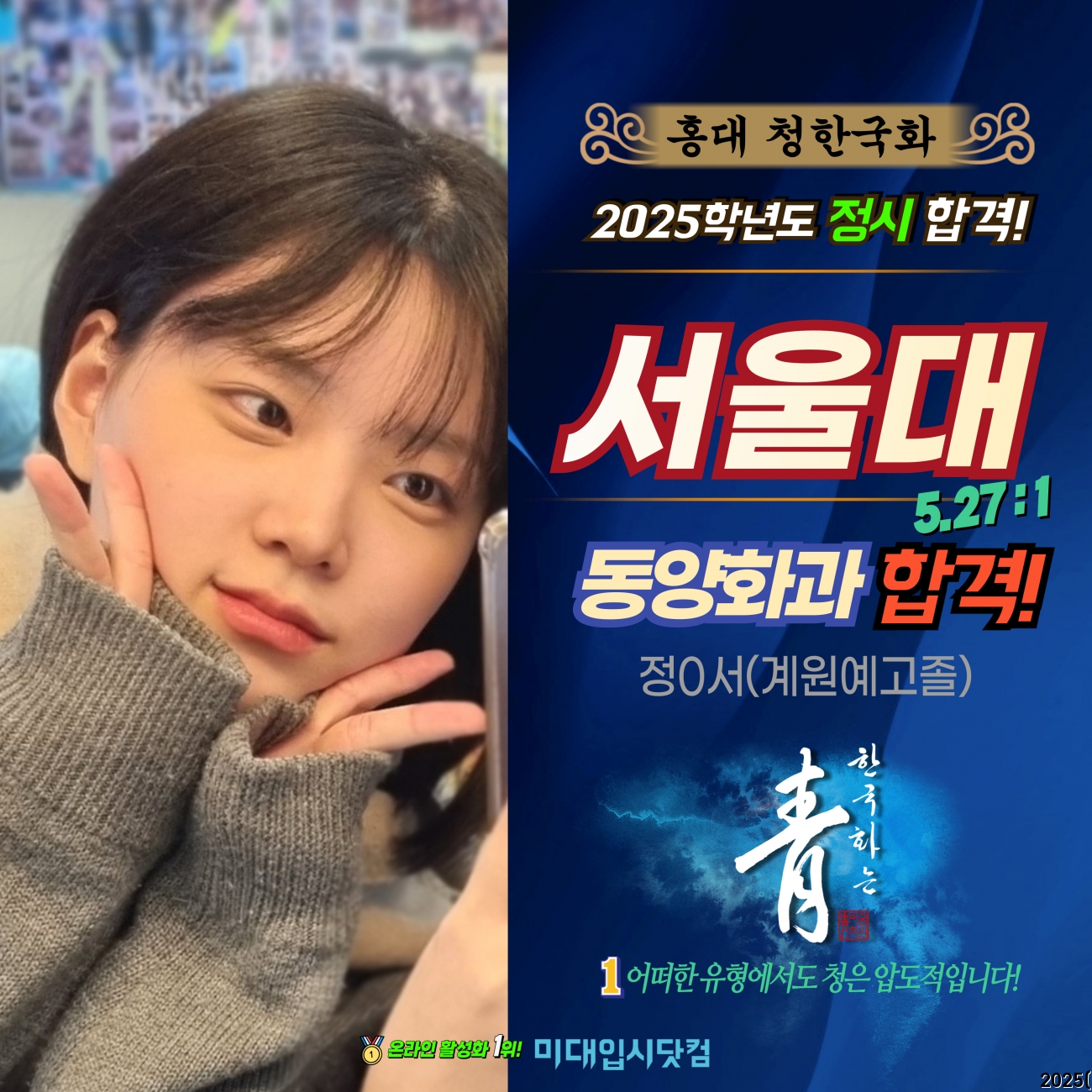 3615 ¤ý 2026Çг⵵(¼ö½Ã)  Ã»°­´ë À¥Å÷¸¸È­ÄÜÅÙÃ÷ ±è0¿¬ (³íÇö°í3) ¿¬¼º´ë ÇÕ°Ý!! - ¼ö½Ã 2°ü¿Õ!!     °æÀï·ü 5:1