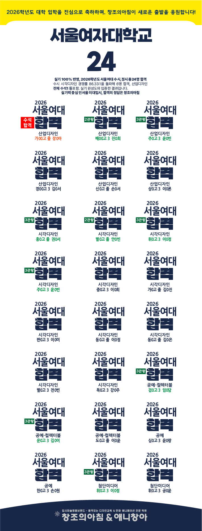 ÇÕ°ÝÀÚ ¸í´Ü | âÁ¶ÀǾÆÄ§ ¹Ì¼úÇпø 2026 ¼¿ï¿©´ë ÇÕ°Ý
