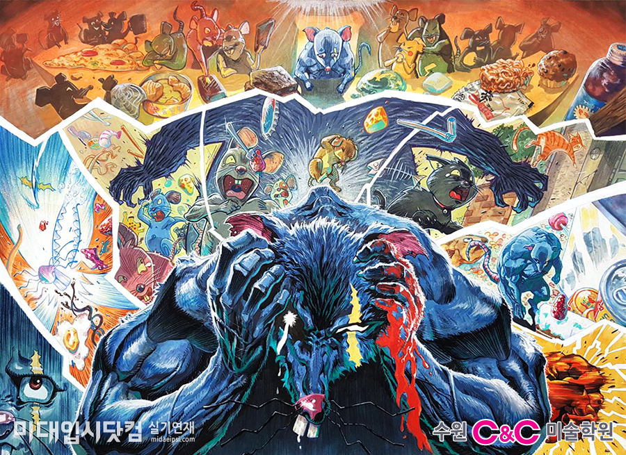 ¸¸È­Á÷¾÷À» ²Þ²Ù´Â Çлýµé¿¡ ÀαâÇб³ û°­´ë!! ±âÁ¸ ÀԽÿʹ ´Ù¸£´Ù!! û°­´ë¸¦ ÁغñÇÏ´Â Çлýµé¿¡°Ô ¾Ë·Áµå¸®´Â ¼ö¿ø ¾¾¾Ø¾¾ ¾Ö´Ï½ºÅ¸ÀÇ À̹ÌÁöº¸µå °ú¸ñ °­ÀÇ! û°­´ëÇб³¿¡¼­ ÁøÇàÇÏ´Â À̹ÌÁöº¸µå°ú¸ñÀº ±Û¾øÀÌ ¿À·ÎÁö ±×¸²À¸·Î¸¸ ÁÖÁ¦¸¦ Ç¥ÇöÇÏ´Â °ú¸ñÀÔ´Ï´Ù. ±ÛÀÌ ¾ø±â ¶§¹®¿¡ Àι°µéÀÇ Ç¥Á¤,ÇൿÀÌ ´õ¿í ºÎ°¢µÇ¸ç, »óȲÀ» ¾Ë·ÁÁÖ´Â ¼Òǰ,¹è°æµéÀÌ Áß¿äÇÑ °ú¸ñÀÔ´Ï´Ù. ÇÏÁö¸¸!! ¹«¾ùº¸´Ù Áß¿äÇÑ °ÍÀº ¹Ù·Î ±âÁ¸ Ä­¸¸È­ ±¸¼º¿¡¼­ ¹þ¾î³ª »õ·Î¿î ¹æ½ÄÀÌ µµÀü °¡´ÉÇÏ´Ù´Â °Í!! ¹Ì¼ú, ±×Áß¿¡ ¸¸È­´Â ´õ´õ¿í Á¤ÇØÁø Á¤´äÀÌ ¾ø½À´Ï´Ù.  ±âÁ¸ ÀÏ¹Ý ¸¸È­°ü·Ã ´ëÇÐ Ä­¸¸È­ °ú¸ñ¿¡¼­´Â Ʋ¾È¿¡¼­¸¸ ¸¸È­¸¦ ±×·È´Ù¸é û°­´ë À̹ÌÁö º¸µå °ú¸ñÀº ÁÖÁ¦¿¡ µû¶ó ³»°¡ Ç¥ÇöÇÏ°í ½Í°í Àü´ÞÇÏ°í ½ÍÀº ³»¿ëÀ» °ú°¨ÇÏ°Ô Æ²¿¡¼­ ¹þ¾î³ª ±×¸± ¼ö ÀÖ½À´Ï´Ù. ¸»Ç³¼±ÀÌ ¾ø¾îÁø ±×¸²¿¡¼­´Â ´õ¿í ³ôÀº ÀÚÀ¯µµ¿Í âÀÇÀûÀÎ È­¸é±¸¼ºÀÌ °¡´ÉÇϱ⠶§¹®¿¡, ÀÌ·¯ÇÑ ´Ù¾çÇÑ µµÀüµéÀº ÇлýµéÀ» ¼±¹ßÇÒ¶§, ÁÁÀº Á¡¼ö¸¦ ¹ÞÀ» ¼ö ÀÖ´Â Æ÷ÀÎÆ®À̱⵵ ÇÕ´Ï´Ù. û°­´ë¸¦ ÁغñÇÏ´Â Çлý¿©·¯ºÐµéµµ ±âÁ¸ Ʋ¿¡¼­ ¹þ¾î³­ ´Ù¾çÇÑ È­¸é±¸¼º, ±×¸®°í ´Ù¾çÇÑ ±×¸²Ã¼, °ú°¨ÇÑ ¿¬Ã¶À» ½ÃµµÇØ º¸´Â°Ç ¾î¶³±î¿ä??